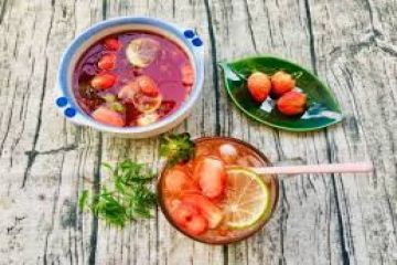 Món trà vị bạc hà the mát kết hợp với vị chua ngọt của dâu tây sẽ làm những ngày hanh hao trở nên dễ chịu hơn. Trà và dâu tây đều chứa nhiều vitamin C, vô cùng tốt cho sức khỏe và làn da của bạn đấy!