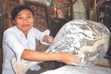 Thứ Ba, 19/06/2007“Nguồn sáng Việt”, “Huyền sử đời Hùng” và “Biển gọi” là tên ba tác phẩm bằng chất liệu vỏ gáo dừa của doanh nghiệp (DN) Bình SVC (Tuy Hòa, Phú Yên) được ghi vào sách kỷ lục VN (Vietbooks). Ít ai biết tác phẩm này được tạo tác có sự đóng góp của những nghệ nhân khuyết tật.