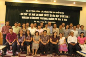 Thứ Năm, 07/06/2007Trong những ngày từ 29 đến 31 tháng 5 vừa qua tại Hà Nội, hội thảo “Dạy nghề cho người khuyết tật hoà nhập tại các trung tâm dạy nghề” đã được tổ chức bởi Dự án “Tăng cường năng lực của hệ thống các trung tâm dạy nghề” (thuộc tổ chức Swisscontact) và Ban Hành động vì sự phát triển hoà nhập - IDEA. Tham dự có 17 giám đốc các trung tâm dạy nghề và đại diện một số sở Lao động, Thương binh và Xã hội.