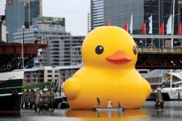 Vịt khổng lồ bị nổ, người Đài Loan khóc sụt sùi