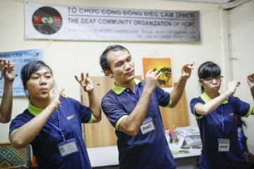 Từ nhiều năm nay, chàng trai câm điếc Đoàn Phạm Khiêm, sinh viên năm cuối Khoa Sơn dầu, Trường ĐH Mỹ thuật TP.HCM, đã nhận dạy thêm miễn phí cho những người câm điếc. Tối thứ ba, năm, bảy, Khiêm dạy kèm toán, lý, hóa. Tối hai, tư, sáu dạy “hát bằng tay”. Ngày chủ nhật, được Trường THCS Trần Văn Ơn (Q.1) cho mượn địa điểm, Khiêm cùng mẹ mở lớp dạy pháp luật, kỹ năng sống và ngôn ngữ ký hiệu cho cả trăm người câm điếc lẫn người bình thường. “Họ là người những câm điếc mồ côi, không được đi học. Ngày thường đi phụ hồ, bưng bê, giữ xe… Tổ chức cộng đồng điếc câm TP (do mẹ con anh Khiêm và vài người tâm huyết thành lập, không có tài trợ - PV) ra đời nhằm trang bị kiến thức xã hội, pháp luật giúp người điếc câm dễ hòa nhập xã hội hơn”, bà Thảo cho biết.