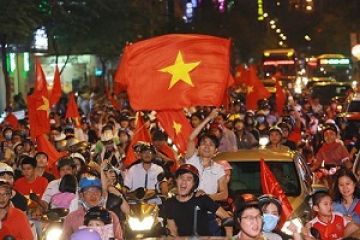 Người dân đổ ra đường ăn mừng chiến thắng của đội tuyển U23 Việt Nam.